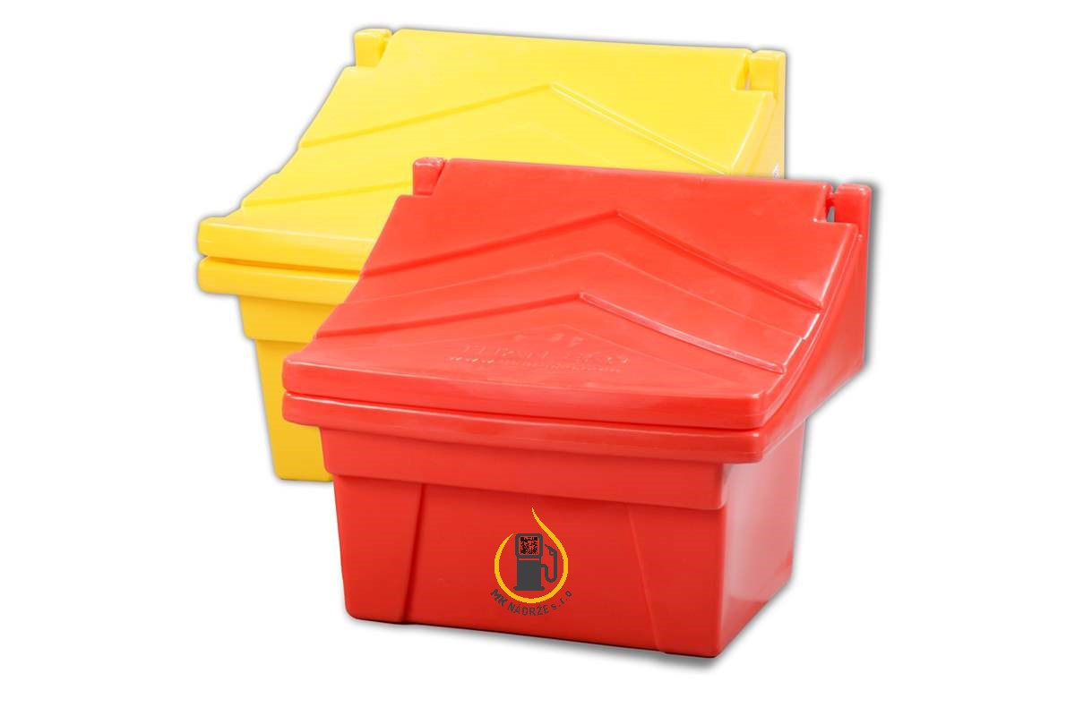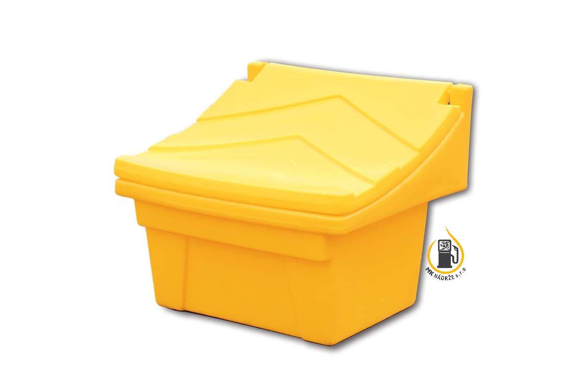 Zásobník je vhodný pre rôzne druhy posypových materiálov ako sú piesok a soľ, alebo skladovanie akýchkoľvek sypkých materiálov. Uloženie zásobníkov je vhodné vo verejných priestoroch na údržbu chodníkov, zastávok električiek a autobusov, železničných staníc, parkovísk atď. Nádoby sú odolné voči mechanickému poškodeniu, zlému počasiu a UV žiareniu, vďaka PE materiálu. Skladovanie a preprava sú jednoduché vďaka ich hmotnosti a možnosti stohovania, navyše sú prispôsobené na manipuláciu s vysokozdvižným vozíkom. V ponuke sú nádoby v žltej, modrej, zelenej a červenej farbe v objemoch 50, 100, 150, 300 litrov. Zásobníky boli certifikované so zárukou 5 rokov.