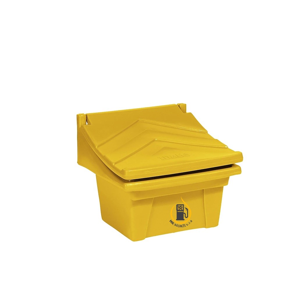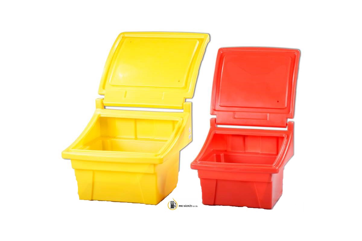 Zásobník je vhodný pre rôzne druhy posypových materiálov ako sú piesok a soľ, alebo skladovanie akýchkoľvek sypkých materiálov. Uloženie zásobníkov je vhodné vo verejných priestoroch na údržbu chodníkov, zastávok električiek a autobusov, železničných staníc, parkovísk atď. Nádoby sú odolné voči mechanickému poškodeniu, zlému počasiu a UV žiareniu, vďaka PE materiálu. Skladovanie a preprava sú jednoduché vďaka ich hmotnosti a možnosti stohovania, navyše sú prispôsobené na manipuláciu s vysokozdvižným vozíkom. V ponuke sú nádoby v žltej, modrej, zelenej a červenej farbe v objemoch 50, 100, 150, 300 litrov. Zásobníky boli certifikované so zárukou 5 rokov.