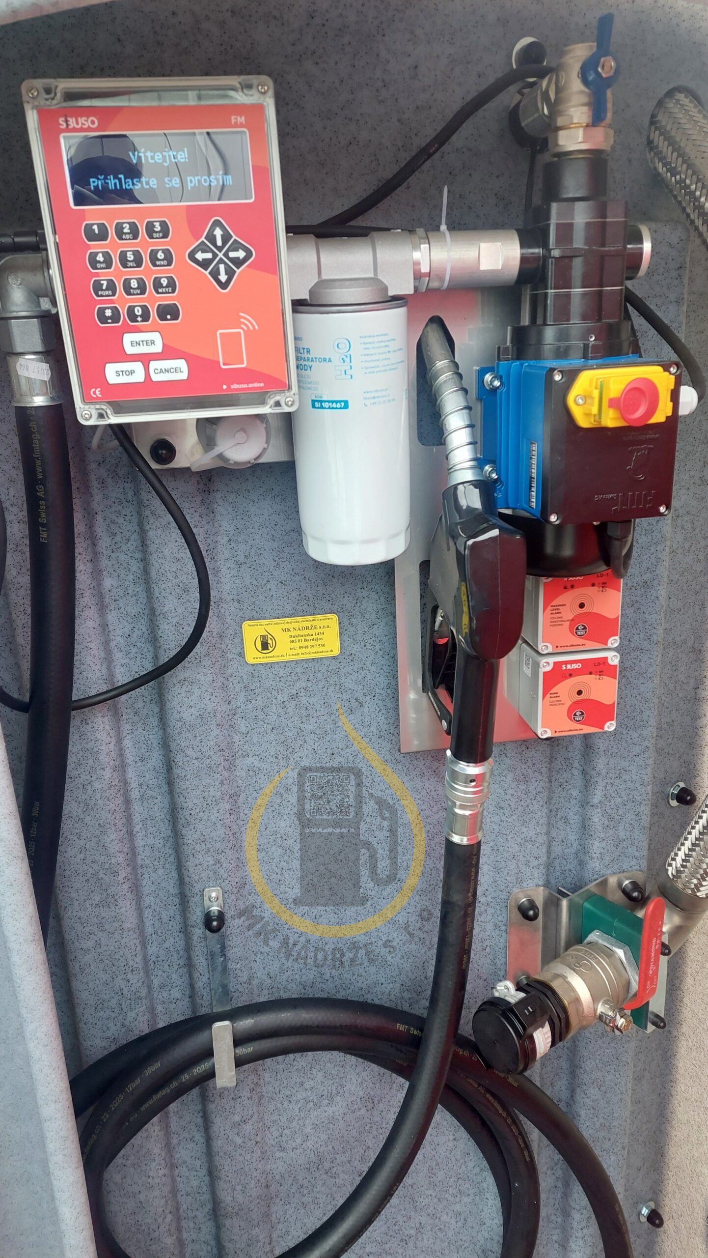 Dvojplášťová nádrž na naftu so systémom pre výdaj pomocou tankovacích kariet