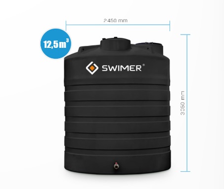 Jednoplášťová nádrž na vodu 12 500 je vhodná na zachytávanie dažďovej, alebo úžitkovej vody pre ďalšie využitie. Nádrž je vďaka svojím rozmerom priestorovo nenáročná a dostupná vo farebnom prevedení, biela, čierna, modrá a zelena. Medzi hlavné plusy nádrže patrí 5 ročná záruka na všetky vodné nádrže a 100% odolnosť voči korózii. Nádrž je dostupná v troch prevedeniach basic, basic plus a classic.