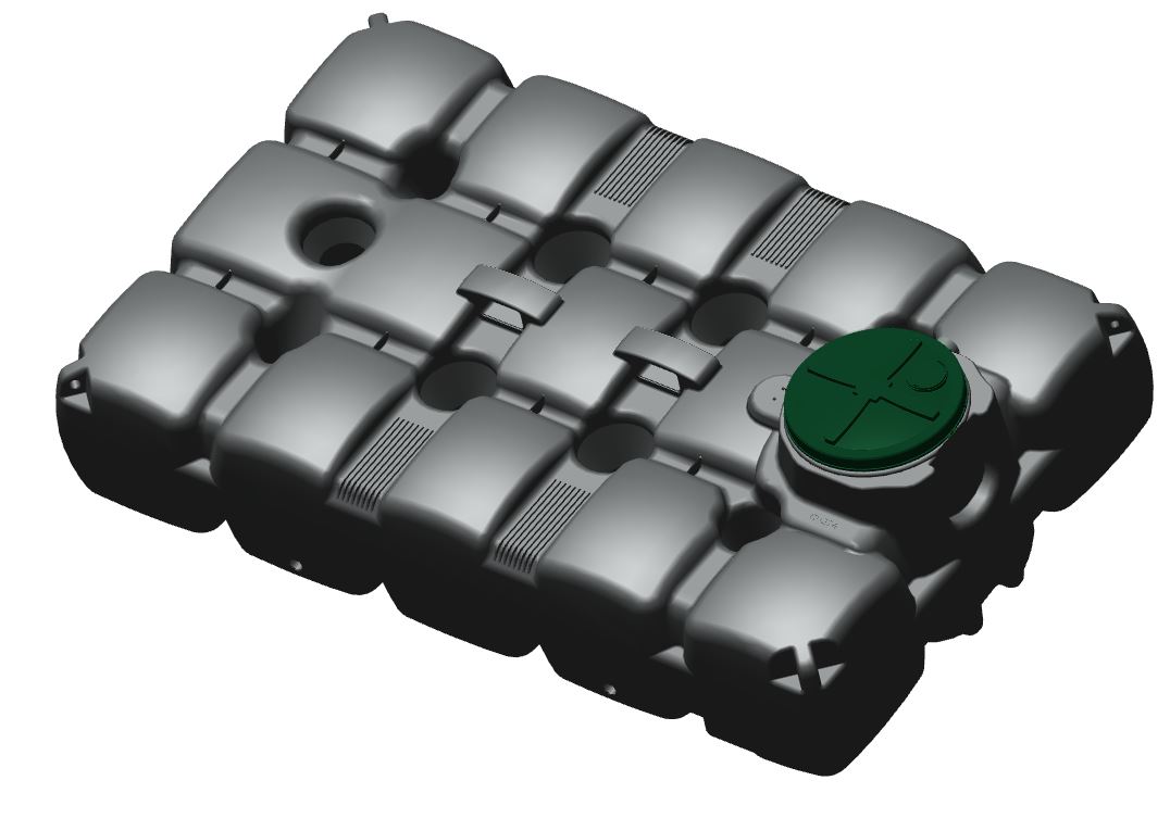 Nízkoprofilová podzemná nádrž na zachytávanie a skladovanie dažďovej s možnosťou vzájomného prepojenia nádrži. Nádrž je ideálnym riešením na miestach kde nie je možný hlboký výkop, alebo na miestach s vysokou hladinou spodnej vody. Zachytenú vodu je následné možné použiť napríklad na zavlažovanie záhrad. V ponuke sú aj doplnky , ako ponorné čerpadlo, filtračný kôš, nadstavec poklopu, sada na prepojenie nádrži a mnoho iných.
