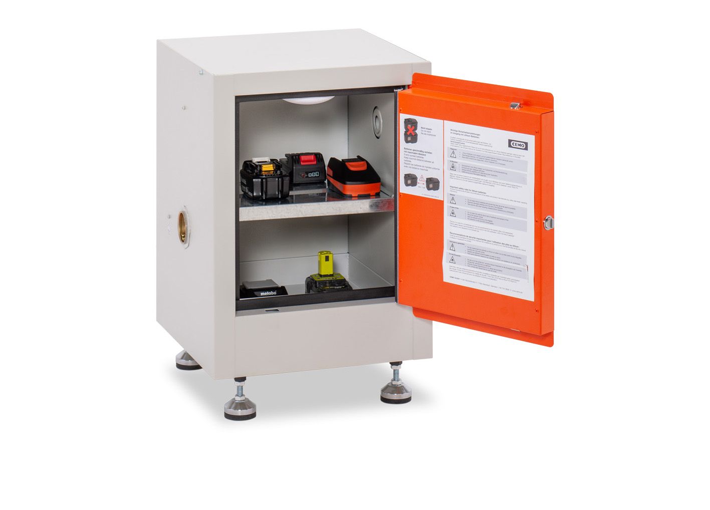 Aj jedna lítiová batéria môže spôsobiť požiar. Preto je bezpečné skladovanie AKU batérii čoraz dôležitejšie. Táto dvojplášťová oceľová skrinka sa môže použiť ako ochranné opatrenie pre nové lítiové batérie. Protipožiarna skrinka je ohňovzdorná s tepelnou izoláciou a TÜV NORD certifikáciou.