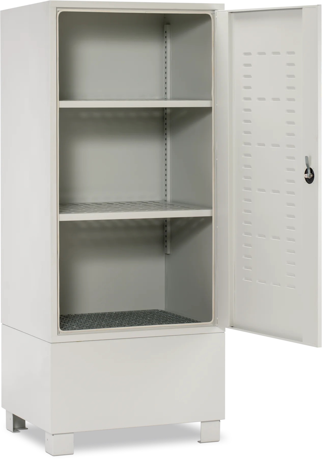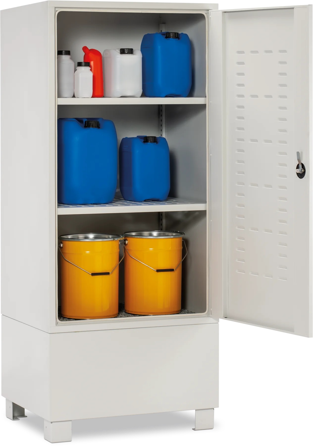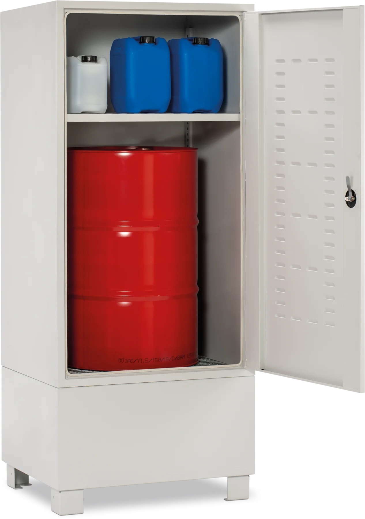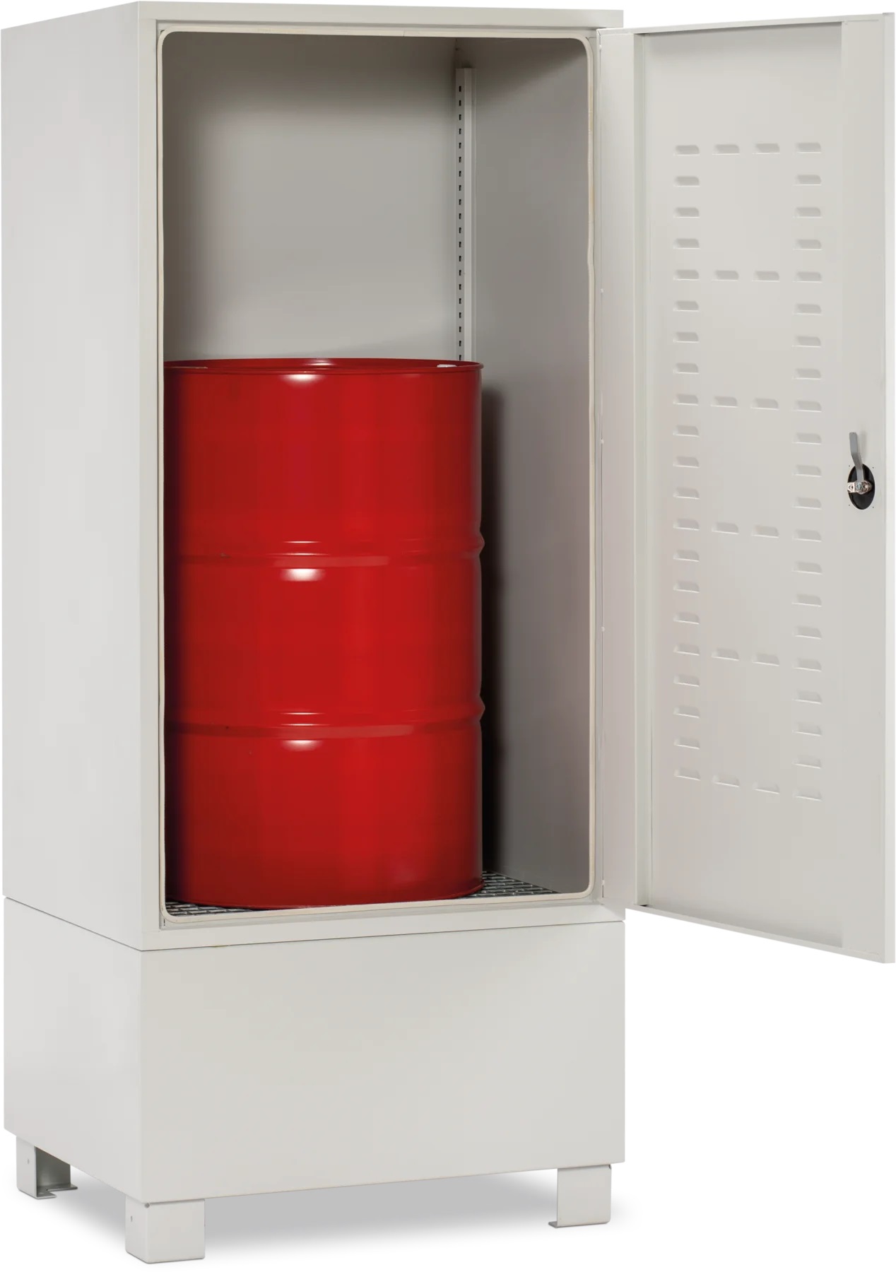 Kompaktný sklad nebezpečných a horľavých kvapalín 220/1, vhodný pre 200 litrový sud alebo pre menšie sudy či kanistre. Sklad je uzamykateľný, certifikovaný TÜV certifikátom StawaR. Vhodný pre vonkajšie aj vnútorné použitie.